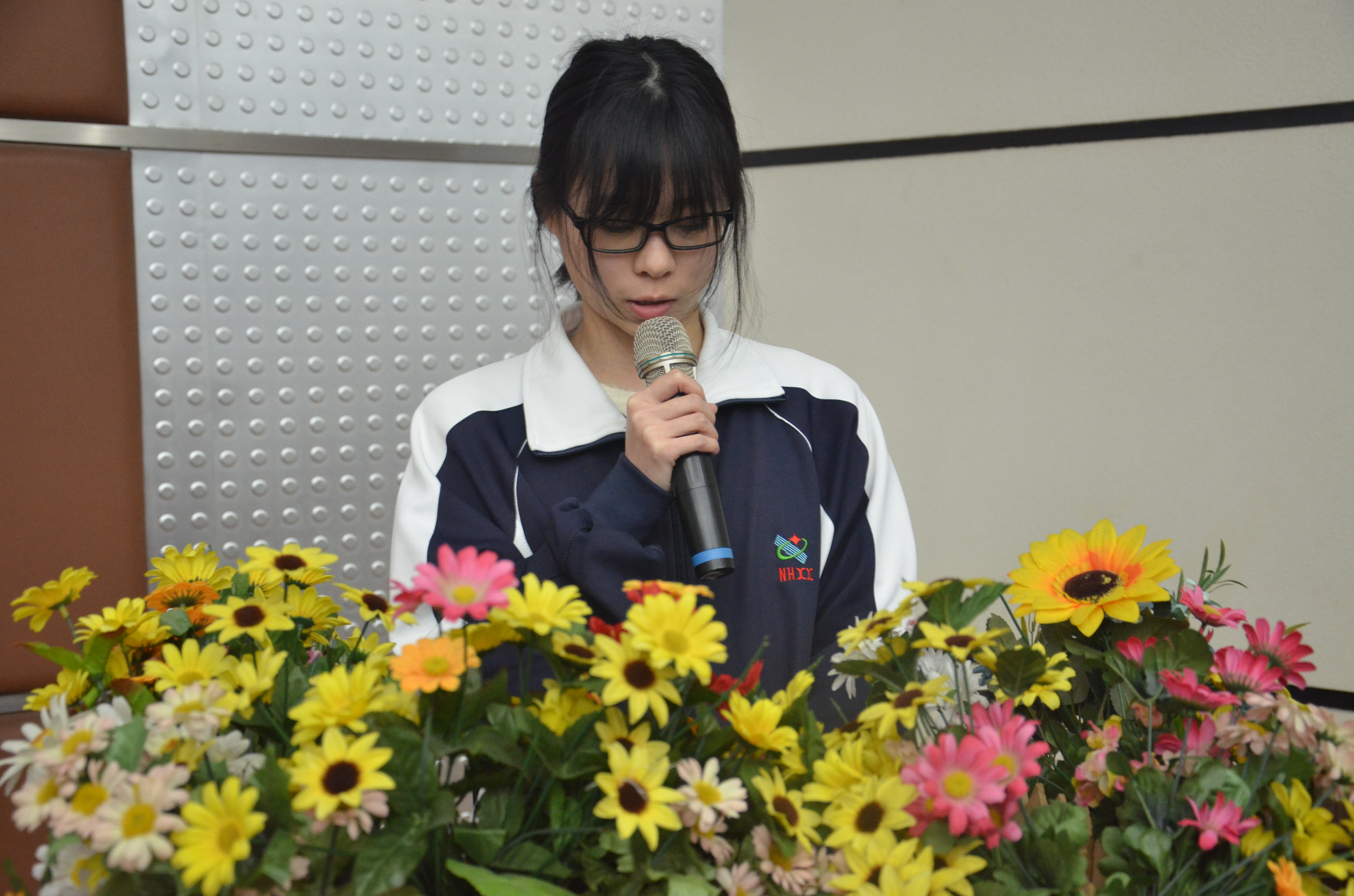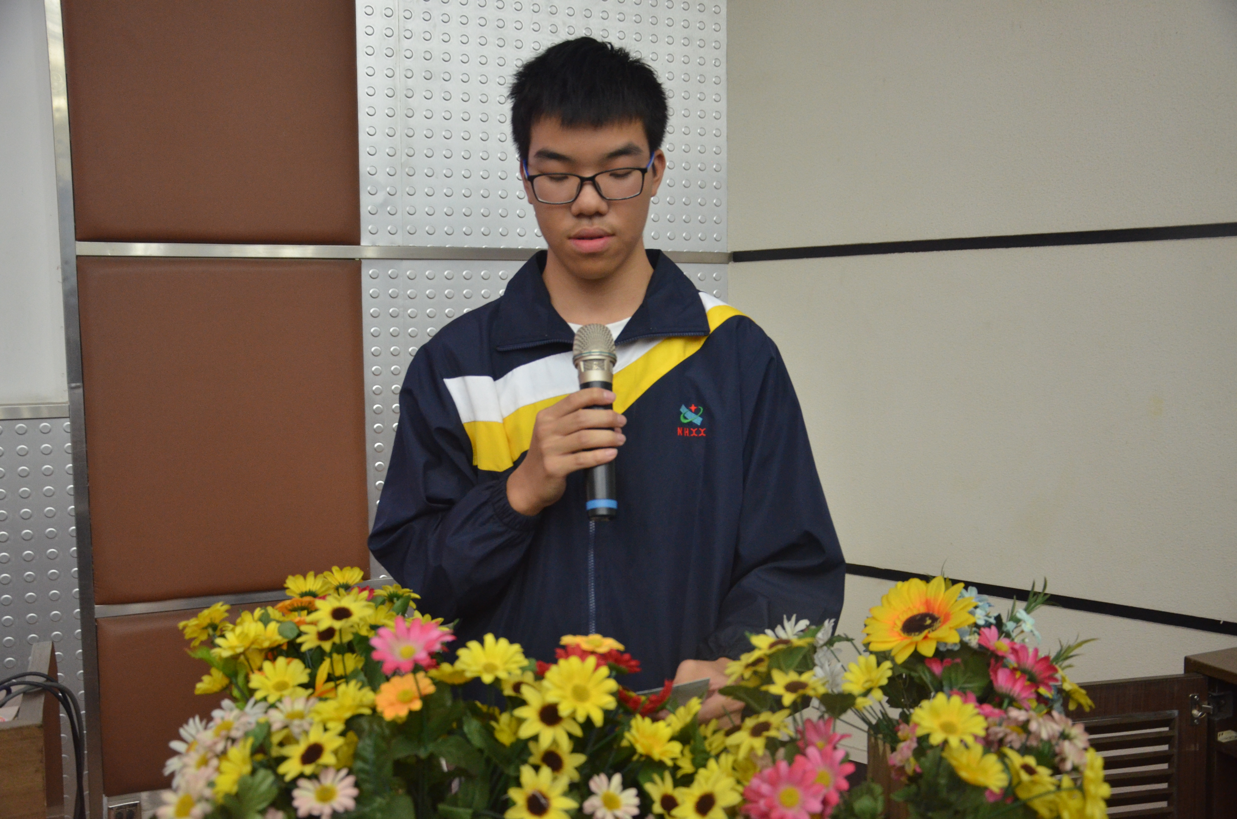紧接着,两位新团员17营销班梁锦辉和15动漫班汤永红分别作为团员代表讲话,他们是男团员和女团员代表,也是新生和老生的代表。