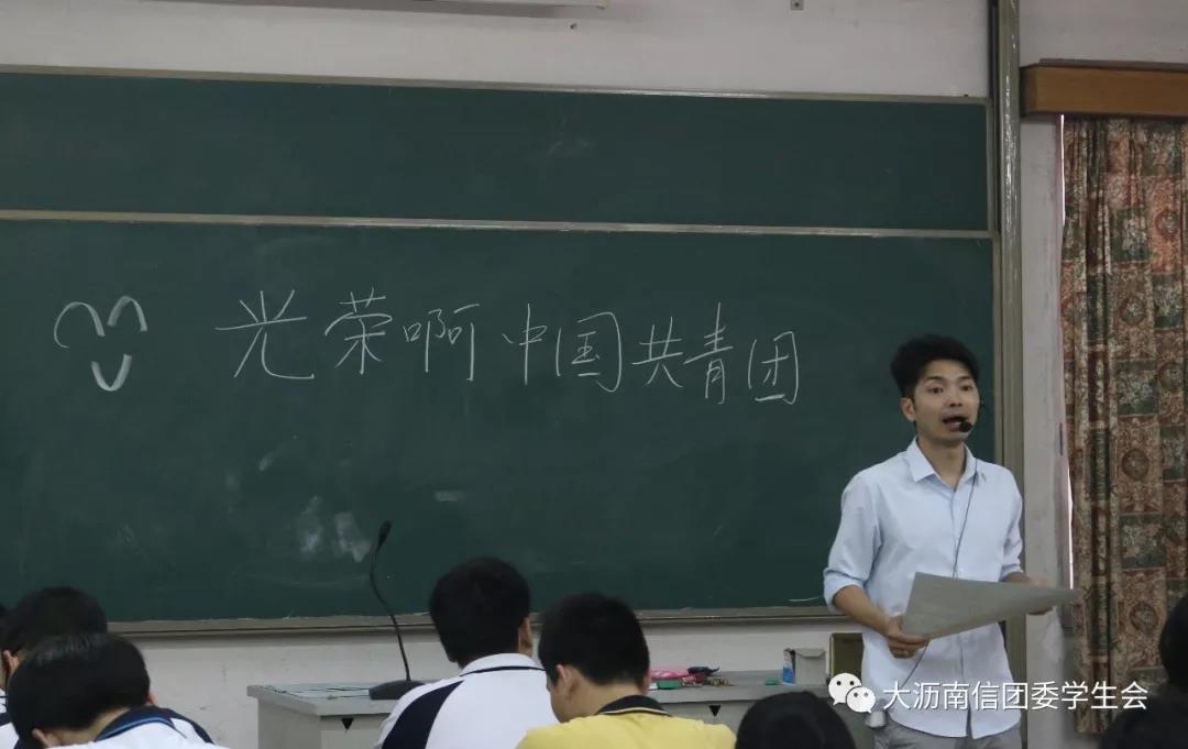 柯青豪副书记向团员们再次回顾了中国共青团的历史,并简明扼要地介绍了南信团委的历年成绩,列举了从南信团委走出的诸多学生干部和优秀团员的案例。他还向入团积极分子们详细说明了推优入团程序其中的十一个步奏:提出入团申请。符合团章要求的学生青年,可自愿提出入团申请、谈心谈话、确定入团积极分子、团课培训、团课考试、 班级演讲答辩、 民主测评、支委会讨论、支部大会讨论、上级委员会批准、入团宣誓。