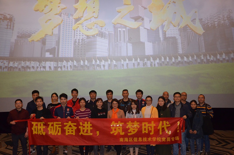 《梦想之城》讲述的是小人物关于青春、梦想、创业追求的励志故事,是一部非常有新意的充满正能量的纪录电影,我们的党员同志观看之后深受鼓舞,纷纷表示:作为一名佛山人,我们深感自豪!我们要把影片所传达的励志精神化成新时代的逐梦激情、奋斗动力,以十九大精神为要求,奋力开创职业教育改革发展的新局面。(供稿人:魏淑萍)