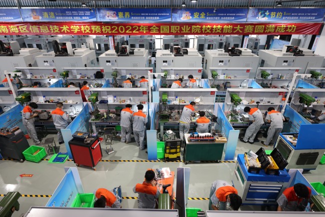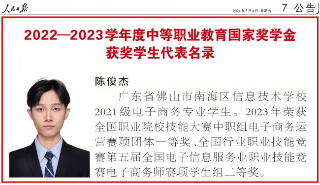 学校持续推进岗课赛证综合育人改革模式,通过赛教融通、赛课融合,不断提升人才培养质量。机电专业优秀毕业生吴龙辉登顶第47届世界技能大赛,优秀学子连续三年荣登《人民日报》百名学生代表名录,学校连续五年获省赛一等奖总量全省第一。2019年至今,获世界赛金牌1项,国赛一等奖8项、二等奖6项,省赛一等奖95项、二等奖38项,163名学生通过技能竞赛获奖免试升学到深职大等知名高职院校,42名同学获得国家奖学金。
